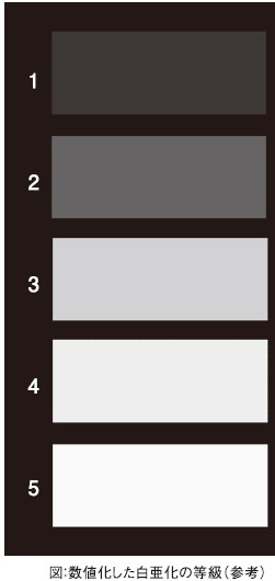 塗膜表面に貼り付けた透明な粘着テープを剥がし、テープに付着した微粉を、微粉が目立つ背景色の上で目視で観察し、標準図版と比較して等級を判定するというものです。