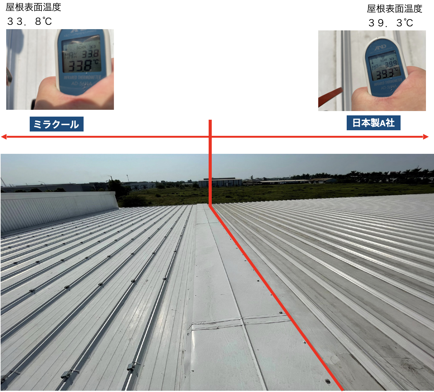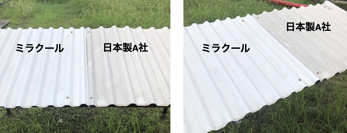 施工後7か月で表面汚れの差によって表面温度にも大きな差が発生。